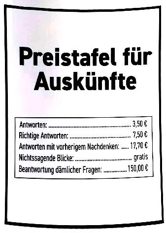 Angestellter in einer Firma zu einem Besucher: "Möchten Sie mit dem Chef sprechen oder soll es jemand sein, der Ahnung hat?`"