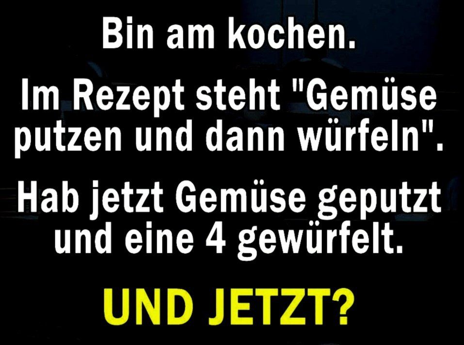 Eigentlich wollte ich gerade Essen kochen. Der erste Satz im Rezeptbuch war: "Nehmen Sie einen sauberen Topf". Ich habe dann Pizza bestellt.